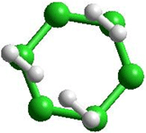 Рис. 2. Фрагмент структуры Суть процедуры конструирования модели адсорбата сводится к ручному заданию положений H-атомов бирадикала для одного лишь произвольного гексагона нанотрубки (C6) и последующему автоматическому распространению созданного таким образом правила на все остальные гексагоны. Пояснить порядок выполнения процедуры задания относительных координат лучше всего на конкретном примере. Требуется построить модель нанотубулярного аккумулятора, в котором бирадикалы располагаются непосредственно над C-атомами с внутренней стороны трубки, таким образом, что один на шестиугольник приходится три бирадикала.