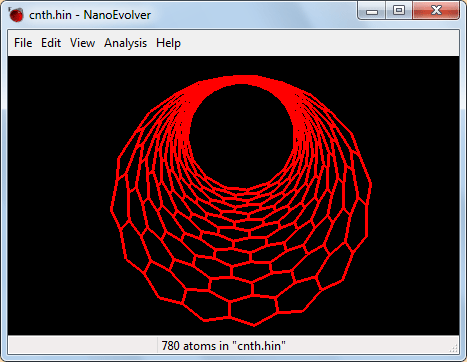 Рис. 6. Вид модели углеродного нанотубулярного аккумулятора водорода в окне «NanoEvolver» Из меню View вызовите команду Graph…