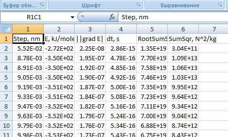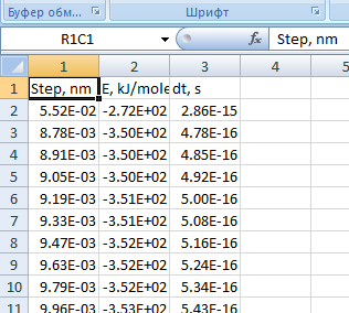Откройте файл, в котором сохранены данные необходимые для выявления кинетических закономерностей. Скопируйте все содержимое файла и вставьте в Excel.