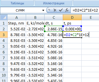 Рис. 14. Окно программы Excel с формулой для счета интегрального времени Распространите данную формулу на все стальные ячейки данного столбца.
