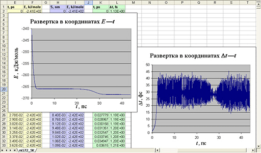 - энергия (E, кДж/моль) — время эволюции (t, пс)