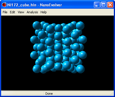 Загрузите из внешнего файла модель структуры кубического кластера никеля Ni172 (File → Load structure…). В диалоговом окне открытия файла найдите директорию Structures и в ней — файл Ni172_cube.hin. Откройте.
