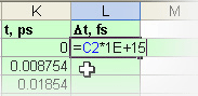 Рис. ix. Ввод формулы в ячейку для пересчета кванта времени в фемтосекундах Распространите формулу на нижележащие ячейки.