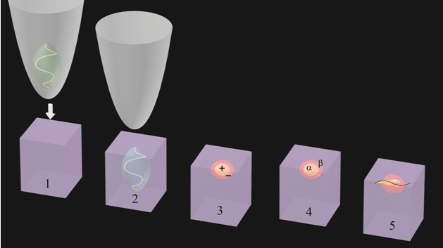 Начиная с 2015 года, в ряде работ [23—31]. было показано, что запутанные пары 2γ-фотонов в неравновесных физических средах инициируют рождение на субатомном уровне материала запутанных пар электронов и дырок — запутанных экситонов. Схема их генерации показана на рисунке 11.