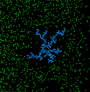 Процесс продолжается до тех пор, пока кластер не будет содержать заданное число агрегированных частиц или до агрегирования всех частиц системы.